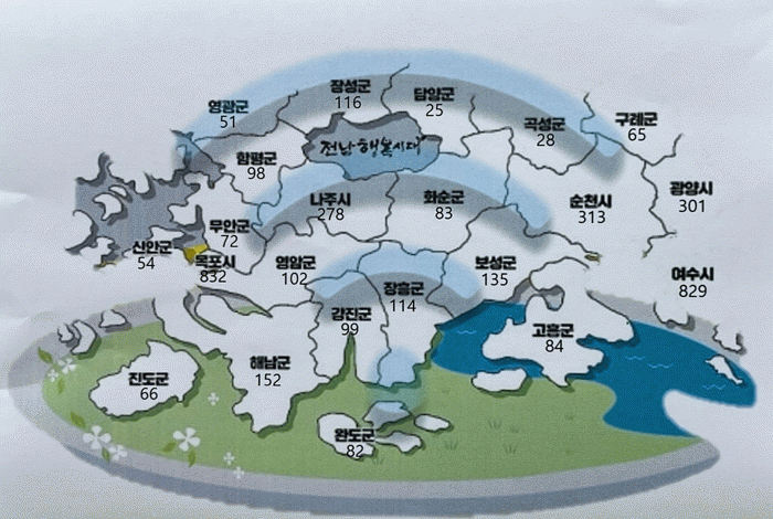 전남도에 따르면 농어촌지역 디지털 접근성을 높이기 위해 2022년까지 240억 원을 들여 공공장소에 무료 와이파이를 구축했다. 구축비용은 과학기술정보통부와 통신사업자가 7대3 비율로 부담했다.