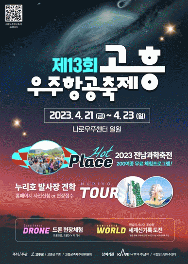 고흥군에 따르면 올해로 13번째를 맞이하는 고흥우주항공축제는 ‘별★난 우주여행 웰컴투 고흥’이라는 주제로 200여 프로그램을 체험할 수 있는 과학체험형 축제로 열리게 된다.