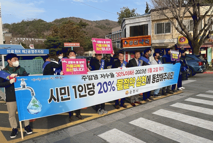 순천시 관계자는 “가뭄은 함께 노력하면 이겨낼 수 있다며 가정에서 샤워시간 줄이기, 양치할 때 컵 사용하기, 양변기 수조에 물병 넣기 등을 통하여 1인당 20% 물 절약을 실천하여 줄 것”을 시민들에게 거듭 당부했다.
