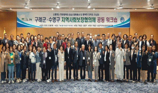 이번 워크숍은 구례군과 수영구가 공동으로 주관하여 지역복지 문제해결 방안 모색과 민·관 협력 네트워크 활성화를 위해 마련했다. 각 대표협의체, 실무협의체, 실무분과, 읍면 지역사회보장협의체 위원 등 100여 명이 참석해 '소통하는 민관협력의 중심! 함께해서 더 행복한 나눔공동체!'라는 주제로 워크숍을 진행했다.