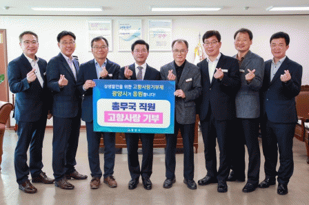 이번 기부는 지난 17일 시 기획예산실과 영광군 가정행복과 직원들이 상생발전을 위해 실시한 상호기부를 계기로 총무국 소속 부서가 솔선수범해 기부 동참자를 중심으로 상호기부를 통해 고향사랑기부제 참여 분위기를 조성하고 기부 지자체의 고향사랑기부제 정착과 상생발전을 응원하기 위해 실시됐다.