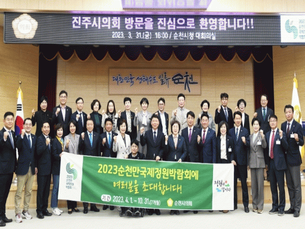 이날 진주시의회는 순천시청 대회의실에서 정원박람회 홍보영상 시청, 기념품 전달 및 간담회를 가진 후 개막식장으로 이동했다.