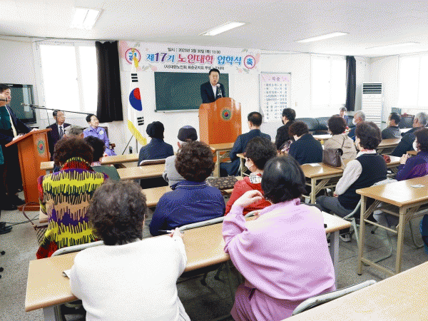 이정희 노인대학장은 환영사에서 “입학생 모두는 이제 모든 짐을 내려놓으시고 오직 심신의 연마와 자녀에게 건강한 모습을 보여 줄 수 있는 어른이 되도록 다 같이 노력하자”며 입학생을 환영했다.
