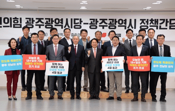 광주광역시는 국민의힘 광주광역시당과 3일 시청 중회의실에서 정책간담회를 개최하고, 광주·전남 반도체특화단지 조성, 가뭄 대책 지원 등 주요 정책을 논의했다.