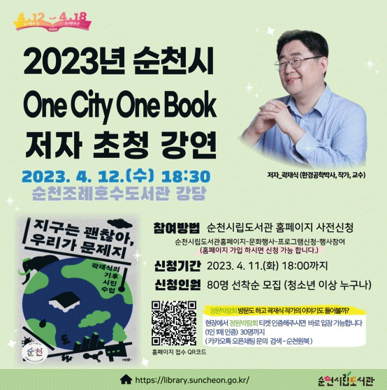 순천시 도서관운영과 관계자는“저자와의 만남으로 기후위기에 대한 시민들이 경각심을 갖고 함께 기후를 위해 무엇을 할 수 있을지 고민했으면 한다”라고 밝혔다.