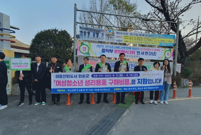 한편 4월 3일 화순군은 화순교육지원청, 화순경찰서와 합동으로 화순제일중학교 학생을 대상으로 여성청소년 생리용품 보편지원 등굣길 홍보 캠페인을 실시했다.