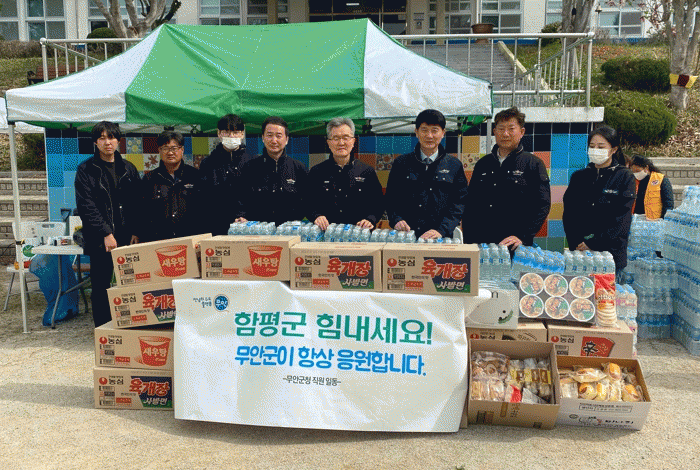 근접해 있는 무안군은 피해를 본 함평군을 위해 긴급으로 산불감시 요원 20여 명과 진화 차량 등을 지원했으며 현장에서 수고하는 산불 진화 대원들 1,000여 명 격려를 위해 생수 1,000개, 라면 600개, 빵 300개, 두유 300개 등 구호 물품을 신속 전달했다.
