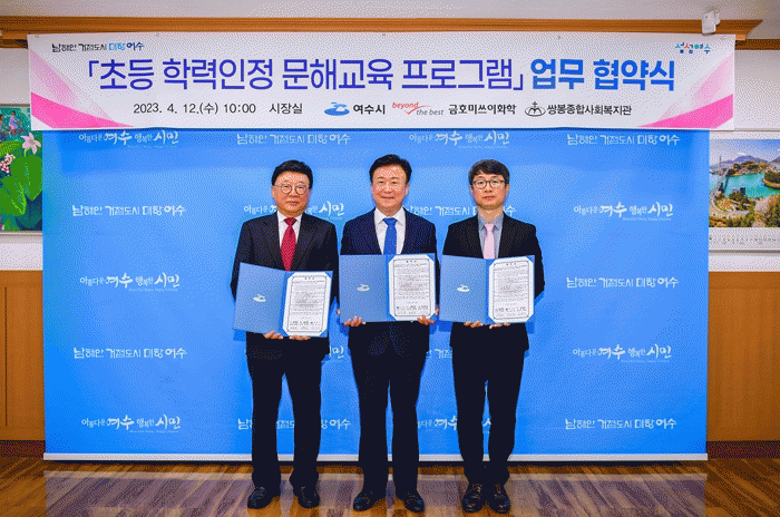 이에 정기명 여수시장은 “문해교육은 어르신들께 학업 성취감은 물론 즐거운 노후생활 제공을 위해 마련했다”라며 “의미 있는 사업에 동참해주신 금호미쓰이화학(주)에 감사를 드리며, 쌍봉종합사회복지관에서도 사업추진에 각별히 더 신경 써 달라”고 당부했다.