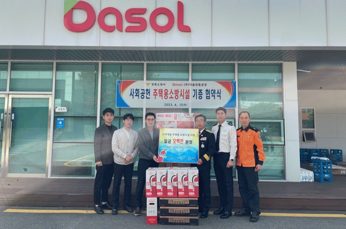이날 업무협약에는 신향식 장흥소방서장과 ㈜다솔 노정근 본부장 등 관계자들이 참석한 가운데 일금 500만원 상당의 주택용 소방시설인 소화기 120대, 화재경보형감지기 120대 등을 기증했으며, 기증된 소화기는 산림인접 산불 취약지역인 유치면 관동마을, 대덕읍 옹암마을 주민들에게 설치·보급할 예정이다.