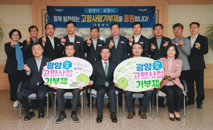 이번 기부는 지난 2월 8일 정인화 광양시장이 고향사랑기부제 참여 분위기를 조성하고 자매결연도시와의 상생발전을 응원하기 위해 포항시, 하동군, 남원시 등 자매결연도시 7개 지자체에 기부한 것을 계기로 실과소장 이상 간부공무원 50명이 솔선수범해 제1호 자매결연도시인 포항과 고향사랑 상호기부로 기부문화 확산에 앞장선 것이다.