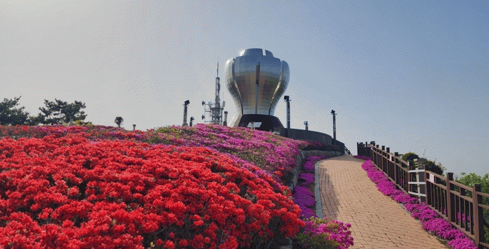 시는 구봉산전망대 일원에 철쭉을 비롯해 꽃잔디, 연산홍 등 핑크빛 봄꽃들이 융단처럼 펼쳐지고 있는 가운데 이번 주말부터 내주까지 절정을 보일 것으로 전망한다고 밝혔다.