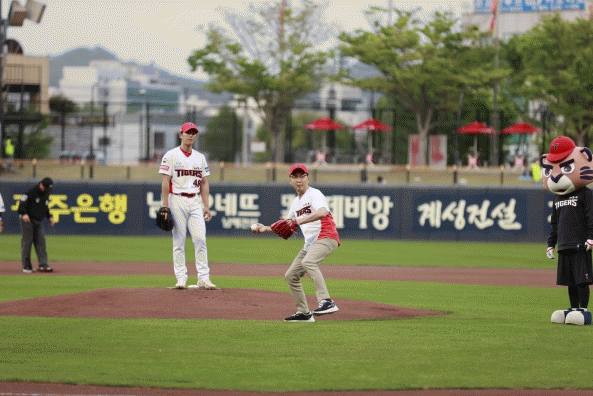 이날 시구는 4월 29일부터 열리는 2023 보성세계차엑스포의 성공 기원과 녹차수도 보성을 홍보하기 위해 광주기아챔피언스 필드에서 보성군민의 날 네이밍데이 행사 일환으로 진행됐다.