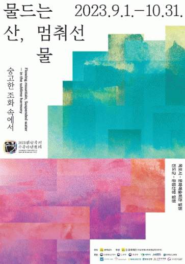 2023 전남국제수묵비엔날레는 ‘물드는 산, 멈춰선 물 - 숭고한 조화 속에서’라는 주제로 9월 1일부터 10월 31일까지 목포문화예술회관, 진도 운림산방 일원에서 펼쳐진다.