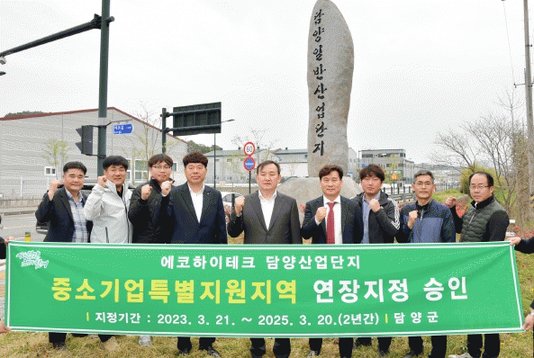 에코하이테크 담양산업단지는 2018년에 중소기업특별지원지역으로 최초 지정돼 5년간 유지했으며, 이번 연장지정 승인을 통해 향후 2년간 중소기업 특별지원지역으로써 다양한 지원 혜택을 받을 수 있게 됐다.