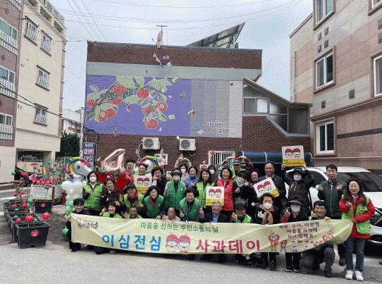 이날 행사에서는 희망, 감사, 미안함 등 전하고 싶은 마음을 담은 나무푯말 편지 사과나무에 꽂기를 비롯해 사과마을정원 봄꽃 식재, 사과나무 화분 청소 등 주민들이 함께 소통하며 사과마을을 가꾸는 시간을 가졌다.