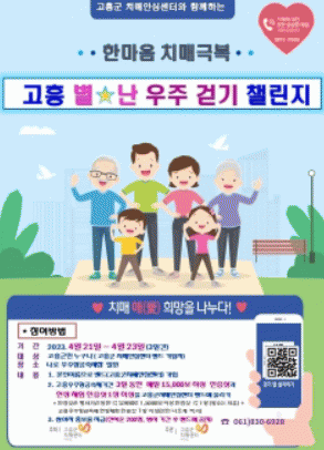 보건소 관계자는 “이번 행사를 통해 치매예방에 좋은 걷기가 주민의 좋은 습관으로 자리 잡고, 치매극복을 기원하는 행사인 만큼 많은 주민들이 챌린지에 동참해 치매 친화적인 지역 분위기 조성에 함께 해줄 것”을 부탁했다.