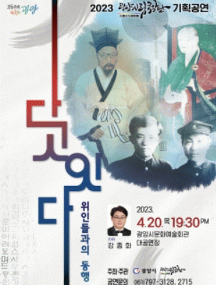 박양균 문화예술과장은 “지역 위인들을 위촉하는 곡들을 광양시립국악단만의 특색에 맞게 재해석한 이번 공연을 통해 가족, 친구 등 소중한 사람들과 함께 즐거운 시간이 되길 바란다”고 말했다.