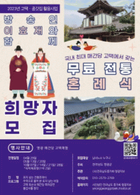 문화재청 공모사업 ‘2023년도 고택ㆍ종갓집 활용사업’의 일환으로 추진되는 이번 사업은 조선 후기 전형적인 상류층 가옥으로 군남면 동간리 동편마을에 있는 매간당고택과 영광 일원에서 진행된다.
