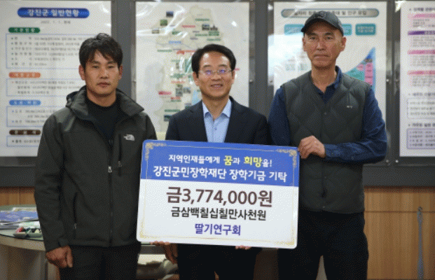 강진군민장학재단 이사장 강진원은 “딸기연구회의 회원들께 감사하다”며 “기탁하신 장학금은 학생들의 성장에 밑거름이 되도록 잘 사용하겠다”고 밝혔다.