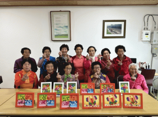 웃음꽃 피는 행복교실은 건강 체조와 단추 액자 공예를 통해 평소 사용하지 않는 소근육을 다양한 방법으로 자극해 치매를 예방하고, 다양한 사회활동을 통한 주민들의 소통을 증진하고자 계획됐다.