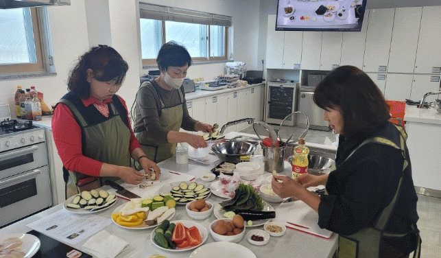 교육은 쌀밥깻잎전, 라이스페이퍼 만두, 기정떡 샌드 등 9가지 퓨전음식을 배우는 실습과정으로 진행됐다.