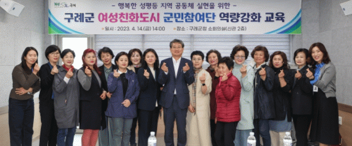 김순호 군수는 “여성의 적극적인 사회참여가 지역 내 보이지 않은 차별과 갈등을 극복하는 원동력이라고 말하며, 군민참여단과 함께 공정하고 평등한 구례, 안전하고 행복한 구례를 만들어 나가겠다”고 말했다.