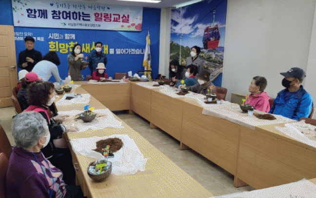 첫 수업으로 다육 정원 꾸미기에 참여한 12명의 어르신들은 화분에 물빠짐 돌과 배양토, 형형색색의 돌, 다육이 식물들로 화분을 꾸며놓고 “이쁜아, 앞으로 나랑 잘 살자”며 따뜻한 애정을 쏟았다.