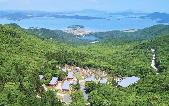 2018년 개장한 면적 112ha 완도자연휴양림은 붉가시나무 등 전국 최대 난대림 자생지다. 해발 340m에 자리해 다도해 청정바다, 일출 경관, 장보고대교, 청해진 유적이 있는 장도, 고금도 등을 한눈에 조망할 수 있다.