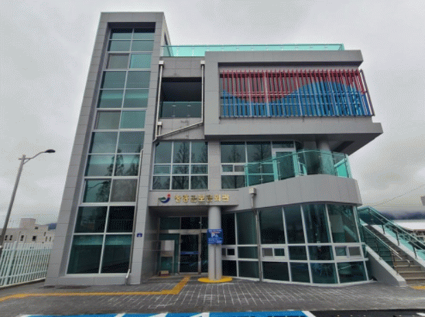 현대적 느낌의 깔끔한 디자인과 태극문양으로 포인트를 준 외관은 장흥군 보훈회관의 특징을 잘 보여주고 있다.