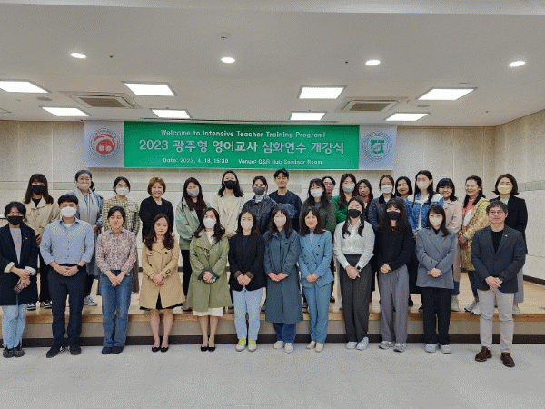 ‘2023 광주형 영어교사 심화연수’는 ▲의사소통 능력 함양 ▲영어·교수 학습방법 이해 및 활용하는 역량 강화 ▲다양한 영어수업 전략 및 적용 ▲영어 수업 공유 ▲ 교실 수업방안 적용 토의 등 과정으로 구성된다. 연수 시작 전 개별 의사소통능력평가를 실시해 수준별 2개반을 편성했다. 또 모든 과정은 원어민 강사가 개인별 맞춤형 수업으로 진행한다.