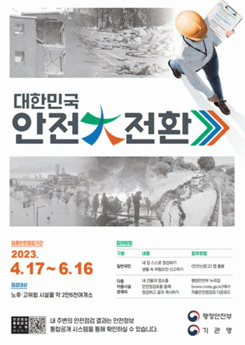‘안전大전환 집중안전점검’은 재난위험요인에 대해 안전점검을 실시해 위험요소들을 사전에 발굴하고 조치하는 선제적 재난예방 활동이다.