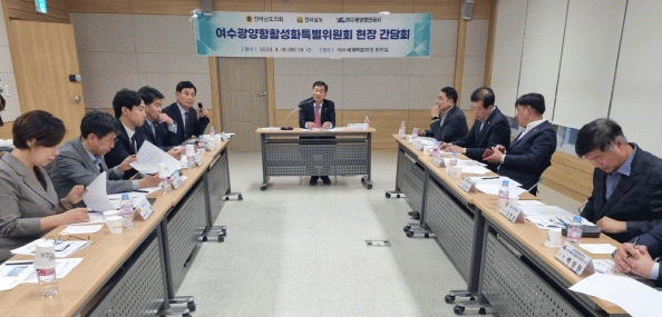 이날 간담회에서 이광일 위원장을 포함한 특위 위원들과 자문위원들이 참석하여 전남도의 여수광양항 추진사업 현황을 듣고, 해양오염 위험성으로 규제를 받고 있는 선박 유류 이적 작업의 규제 완화 등 향후 여수광양항 활성화를 위한 현실적인 대책에 대해 심도 있는 의견을 나눴다.