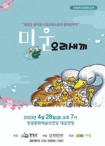 영광군 꿈키움 드림오케스트라는 2018년부터 관내 초등학생의 음악적 소양을 성장시켜준 악단으로 이번 공연에는 호남필하모닉오케스트라 협연과 동화구연 전문 성우가 특별출연하여 공연의 재미와 완성도를 책임진다.