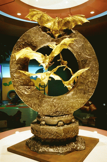 460㎏에 육박하는 황금박쥐상은 원형의 조형물 안에 황금박쥐 5마리가 웅장한 자태를 뽐내고 있다.