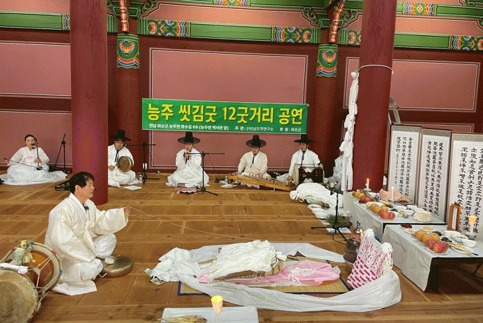 이번 능주 씻김굿 공연은 ① 혼맞이 → ② 조왕굿 → ③ 안당 → ④ 본향 → ⑤ 선영굿 → ⑥ 제석굿 → ⑦ 오구굿 → ⑧ 고풀이 → ⑨ 씻김 → ⑩ 길닦음 → ⑪ 사신 → ⑫ 대신치기 순으로 전체 열두 굿거리 전체를 8시간 동안 공연하면서 문화재적 가치를 충분히 보여 주었다.