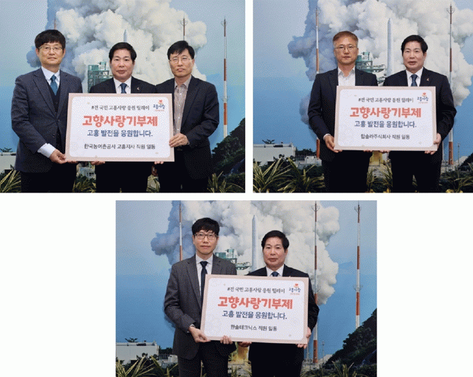 군에 따르면 한국농어촌공사 고흥지사 · 탑솔라주식회사 · 한솔테크닉스 임직원들이 고향사랑기부제의 성공적인 정착과 지역 발전을 응원하기 위해 고흥사랑 고향사랑기부에 동참했다.