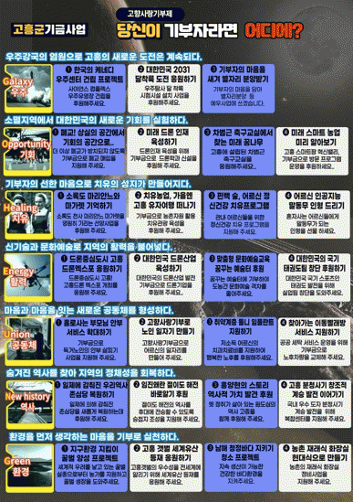 또한, 소록도의 천사 마리안느와 마가렛 선양사업, 고흥 차범근 축구교실 운영 지원, 찾아가는 이동 빨래방 후원 등은 지정기부로 추진할 예정이다.