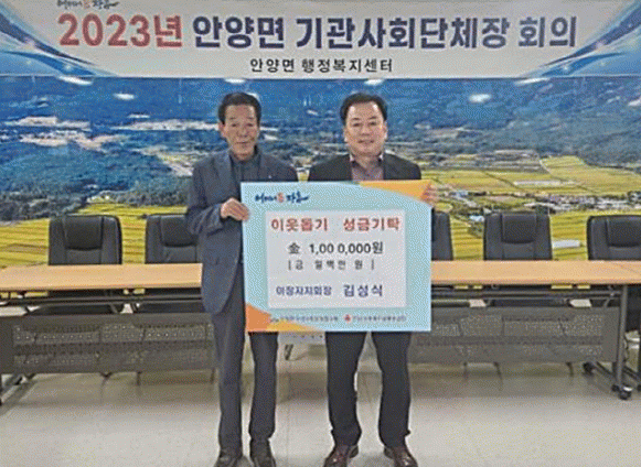 윤양현 공동위원장은 “마을 이장 활동에 최선을 다하면서 따뜻한 이웃 사랑 실천을 보여준 이장님께 감사드리며, 성금은 이장님의 따뜻한 마음을 담아 어려운 이웃을 위해 소중히 사용될 예정이다.”고 말했다.