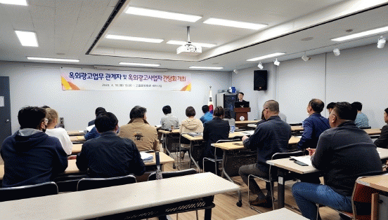 이번 간담회는 전라남도옥외광고협회 고흥군지부, 관내 옥외광고 사업자, 업무관련 공무원을 포함해 40여 명이 참석한 가운데 바람직한 옥외광고 문화 형성을 위해 옥외광고물 주요 현안에 대해 의견을 나누고 민ㆍ관 이 협력해 불법광고물을 정비할 수 있는 방안과 개선사항을 논의했다.