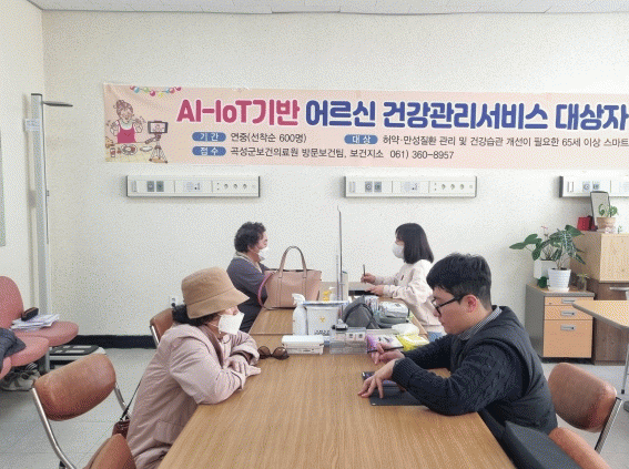곡성군 관계자는“AI-IoT기반 어르신 건강관리 사업은 현재 꾸준히 신규 대상자를 모집하고 있다. 많은 주민들이 건강관리에 관심을 갖고 참여하기 바란다.”라고 말했다.