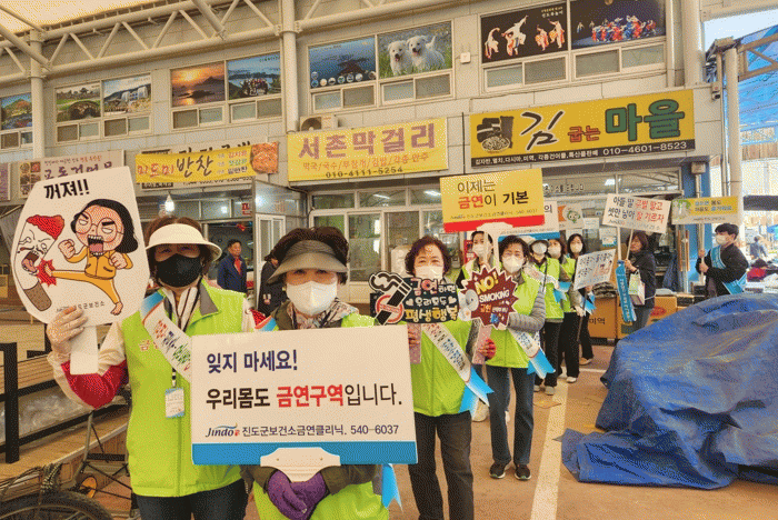 또 쾌적한 정주환경을 통한 살기좋은 진도 만들기를 위해 진도읍 5일 시장에서 간접흡연 피해 홍보 캠페인을 펼쳤다.