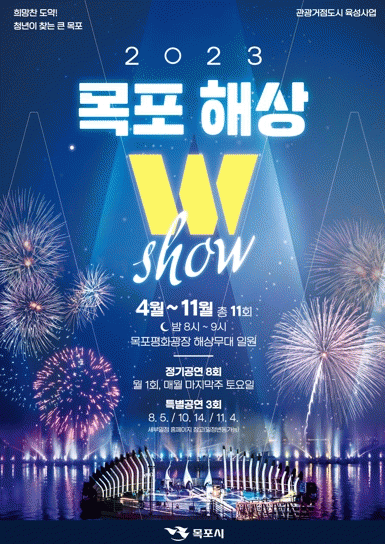 시 관계자는 “올해 해상W쇼는 완성도를 높인 신규 작품을 제작해 젊은 세대가 즐길 수 있는 곡과 장르의 공연이 펼쳐진다”면서 “시민과 관광객 모두 목포해상W쇼를 통해 행복한 추억을 가져가길 염원한다”고 말했다.