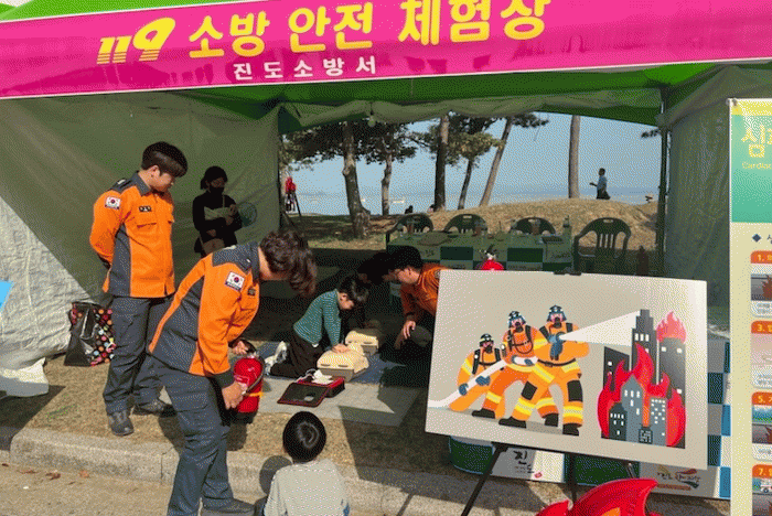 이번 소방안전체험장은 이태원 참사로 계기로 초기 심폐소생술 및 응급처치의 중요성을 알리고자 진도군민과 관광객을 대상으로 위험한 환경과 행동, 사고 유발 요소를 이해하고 실생활 응급처치 대응 역량을 강화하기 위해 마련됐다.