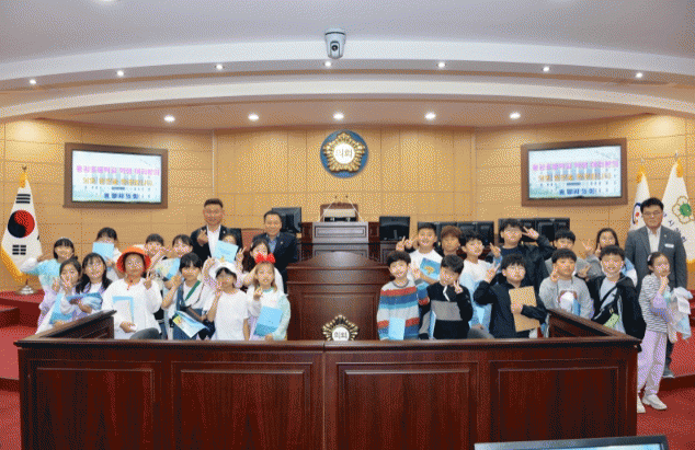 용강초등학교 학생들은 사무국 직원의 안내를 받아 본회의장 곳곳을 둘러본 후 영상을 시청하며 시의회의 역할과 기능, 시의원이 하는 일에 대해 설명을 들었다.