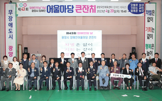정인화 광양시장은 "무장애 도시 조성 추진, 장애인 재능키움센터 운영, 직업재활시설 확충, 바우처 택시와 저상버스 증대, 양질의 맞춤형 일자리 사업, 돌봄 서비스 확대 등을 통해 불편 없는 사회환경을 완성해 나가겠다“며 ”더불어 시민들과 함께 차별과 차이를 넘어 장애인과 비장애인 모두가 살기 좋은 ‘행복도시 광양’을 힘차게 열어 가겠다“고 말했다.