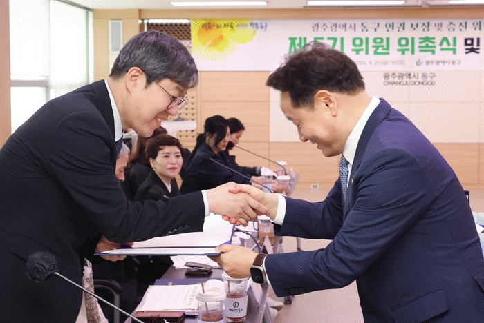 이날 회의는 ‘동구 인권보장 및 증진에 관한 조례’에 따라 민간위원 위촉장 수여, 위원장·부위원장 선출, 2023년 인권업무 시행계획 보고 순서로 진행됐다.