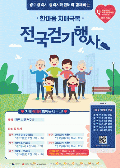 광주시, 광주광역치매센터, 5개 자치구 치매안심센터가 공동으로 주관하는 이번 행사는 ‘치매愛(애) 희망을 나누다’라는 주제로, 치매에 대한 인식 개선 및 예방의 중요성을 홍보하고 코로나19 장기화로 지친 일상을 걷기운동을 통해 극복하기 위해 마련됐다.