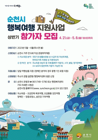 ‘순천시 행복여행 지원사업’은 관광 활동에서 소외된 취약계층의 관광 기본권 보장과 지역 관광산업 활성화를 위해 추진된다.