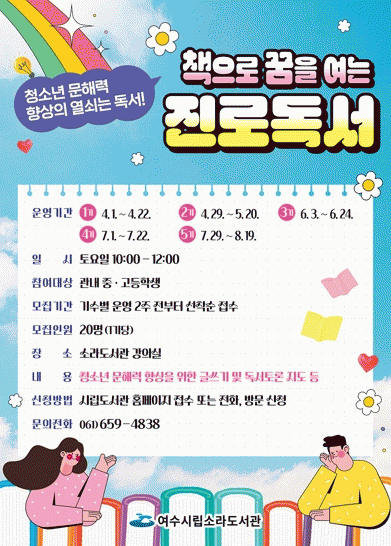 시 관계자는 “이번 진로독서는 전남도 올해의 책 선정도서를 활용해 기획했다”라며 “청소년들이 문해력을 비롯한 사고력과 어휘력을 키울 수 있는 유익한 시간이 되길 바란다”고 말했다.