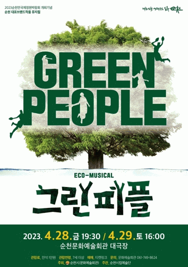 2023순천만국제정원박람회의 성공을 기원하며 순천시립합창단을 비롯한 순천시립극단, 순천시립소년소녀합창단 등 순천시립예술단 3개 단체가 공동 참여한 창작 에코 뮤지컬 ‘그린피플’은 지난해에 초연하여 관객들에게 많은 호응을 얻었으며, 이번 공연은 국내 최고의 제작진이 참여해 작품의 완성도를 한층 더 높였다.